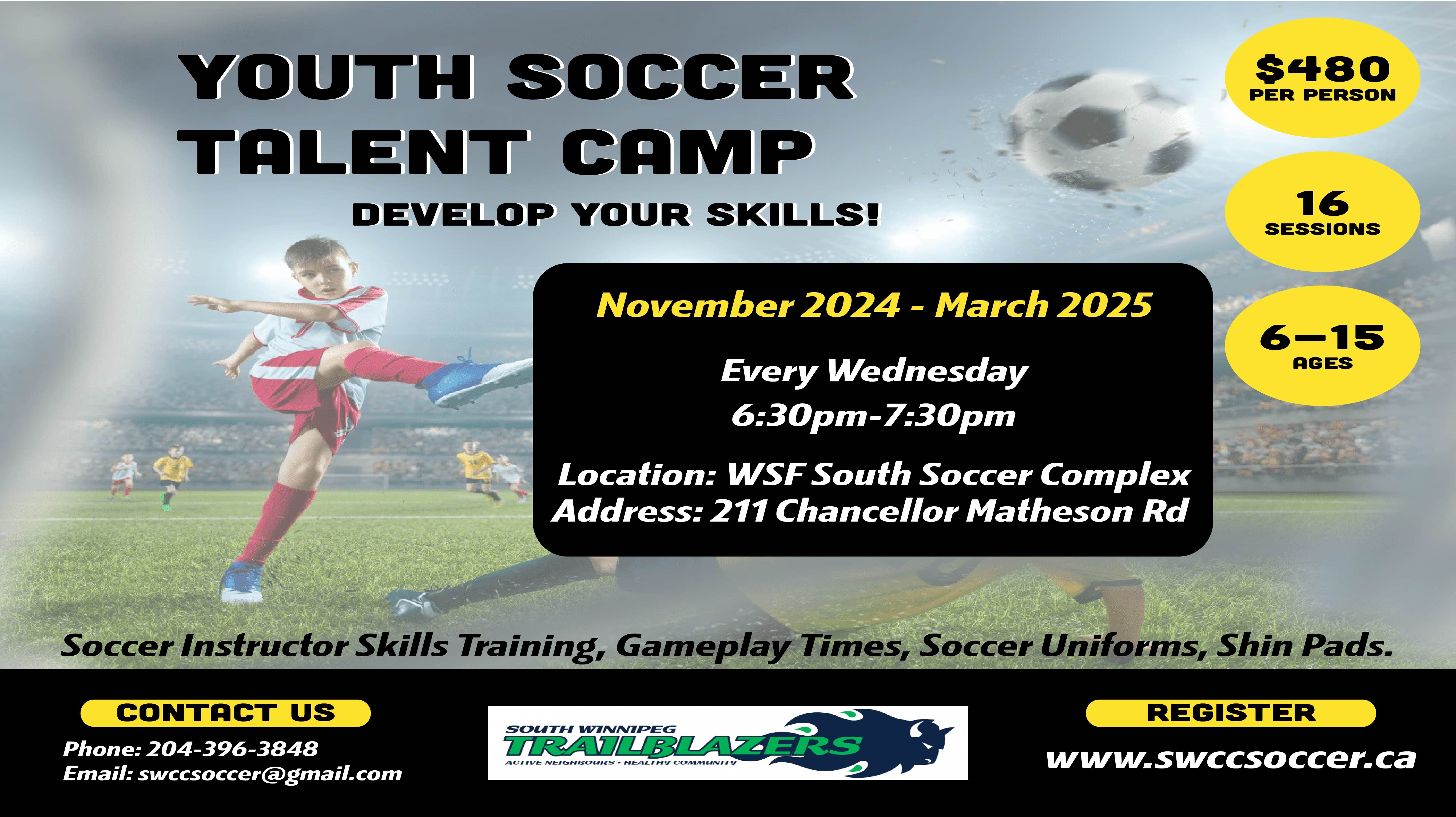 SWCC is hosting 5 different Skills Development Talent Camps over the next year as per below for U6 to U13 players. Spring and summer camps will be held at our outdoor location (Kirkbridge Park at 119 Kirkbridge Drive). The indoor camp will be help at WSF South (211 Chancellor Matheson Road).